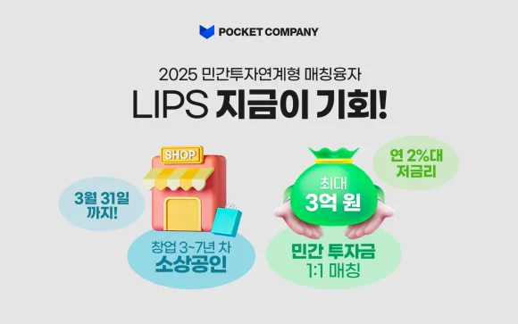LIPS는 민간 투자금을 유치한 소상공인분들에게 정부 지원금을 추가로 제공해 자금 부담을 줄이고 사업 성장을 돕는 형태입니다 😆